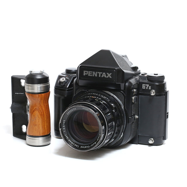 Pentax 67II med 105/2,4 och trähandtag.