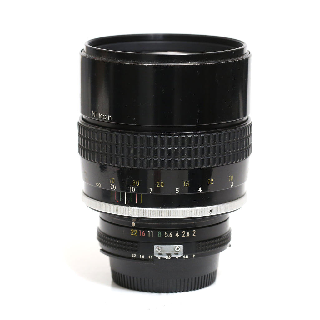 Nikons ljusstarka 135mm ai objektiv.Fint kosmetiskt skick, fina glasytor, har precis även fått en rengöring mellan glasen. Helt rena bländarlameller, fokuseringen löper fint. Inbyggt motljusskydd. Ingår 2 st lock.