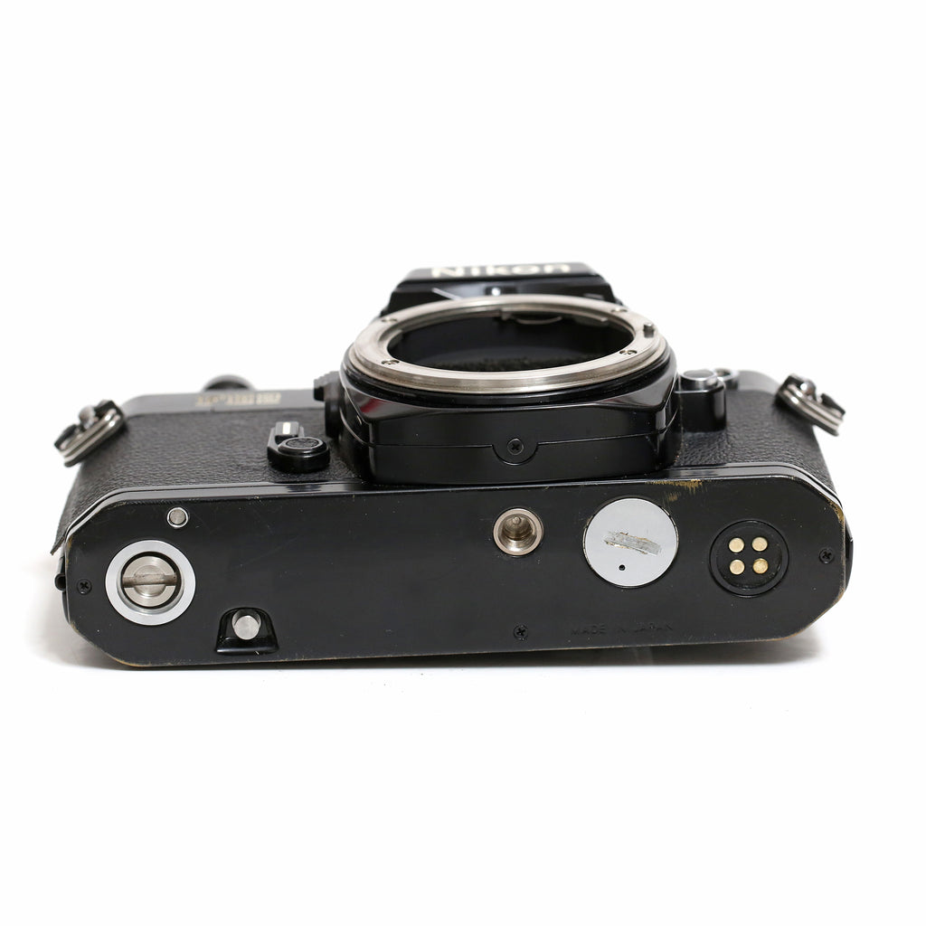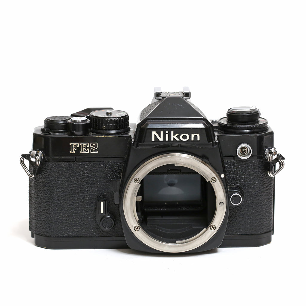 Klassiska Nikon FE2 med manuell inställning samt tidsautomatik med bländarförval.Fint skick med några väldigt små dents, i bra använt skick (se bilder för egen bedömning).