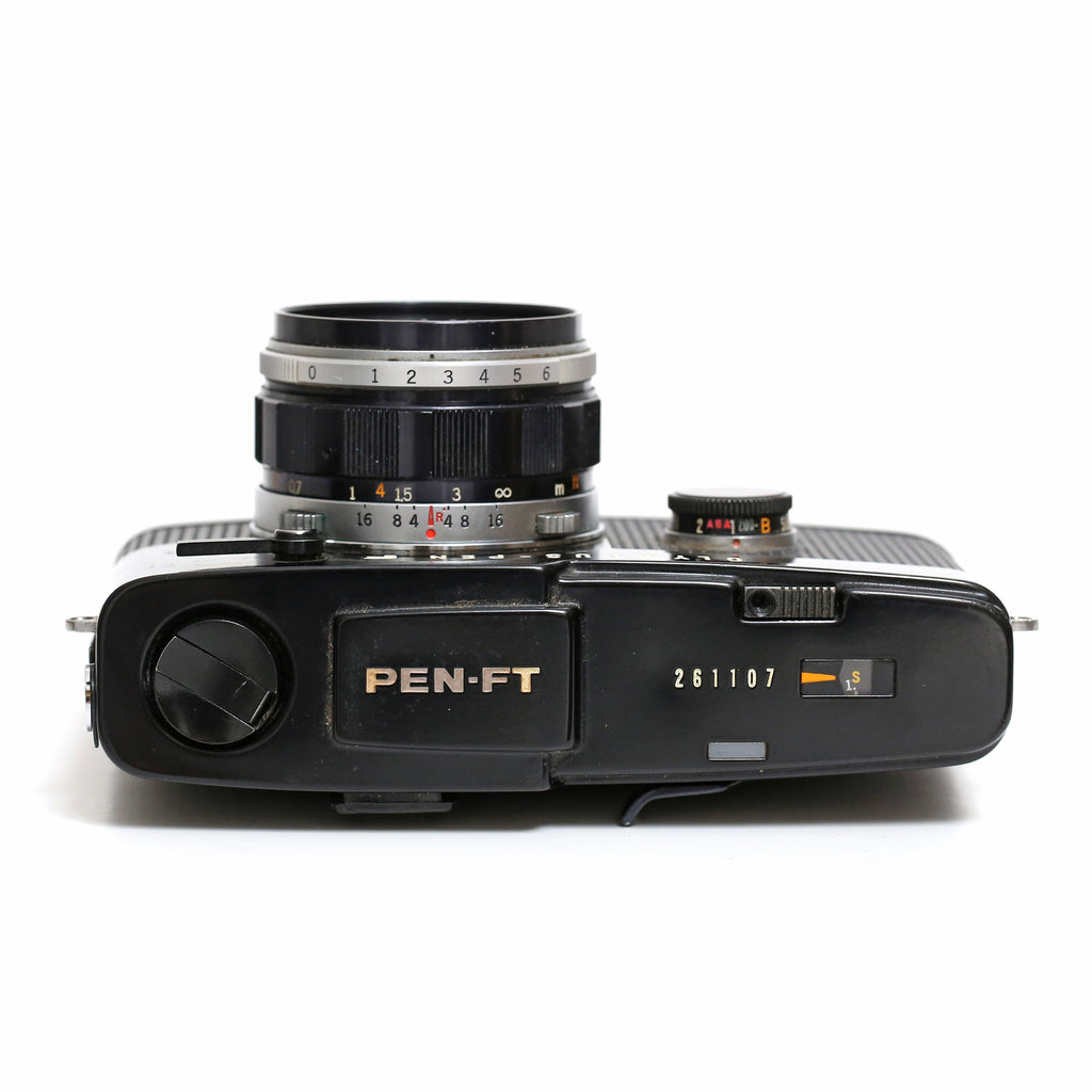 Mycket fin svart Pen FT med fungerande ljusmätare.Finns nån micro dent på, annars i väldigt fint bruksskick. Långa slutartiderna låter rimliga.Halvformat 18x24mm som alltså ger 72 bilder per filmrulle.