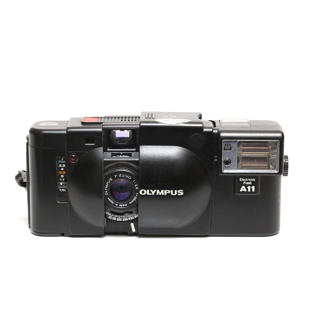 Fin, fullt fungerande Olympus XA med fräsch ljustätning.