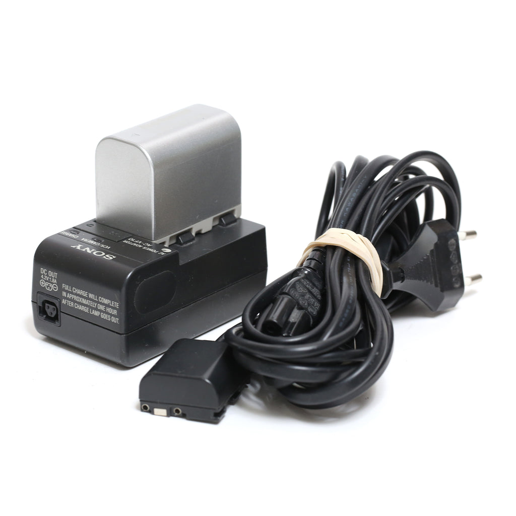 Följer med AC adapter (även batteriladdare) så man kan filma medans man har sladden i vägguttaget. Följer även med ett batteri, som inte verkar kunna ladda fullt. Finns nya batterier att köpa på nätet för några hundralappar. Följer inte med något DV-band.